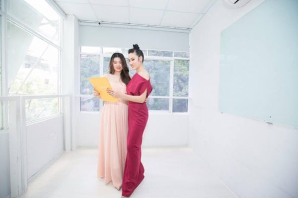 Nông Thanh (váy hồng) và CEO Đoàn Thị Thùy Trang trong buổi trainning hệ thống miền Nam vừa qua